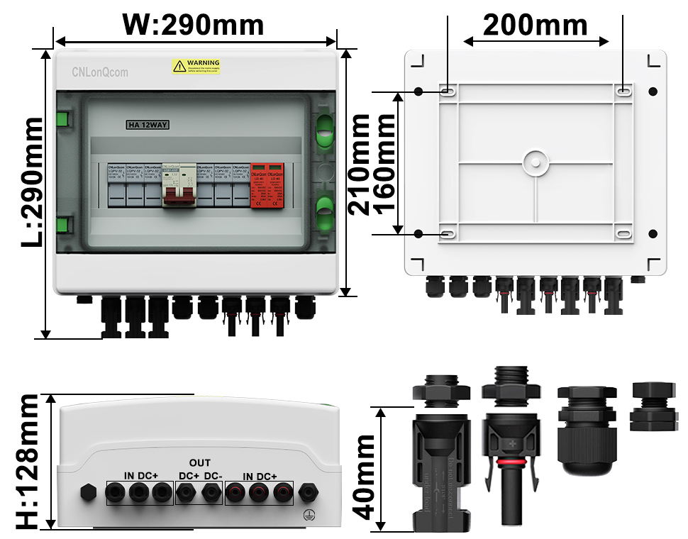 Le combinateur PV en plastique PV de la série HA de CNLONQCOM Box 3 dans 1 OUT DC500V / 600V / 800V est principalement utilisé pour la protection des systèmes PV et sont souvent utilisés dans les systèmes hors réseau ou connectés au réseau. Comme les panneaux photovoltaïques, le RV, le bateau, le PV extérieur, la maison, etc.