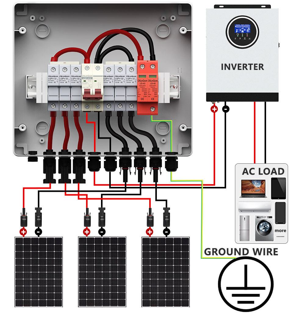 PV Combiner Box 3 dans 1 OUT DC500V / 600V / 800V protège efficacement les onduleurs et les panneaux solaires contre les dommages et les envois du feu.